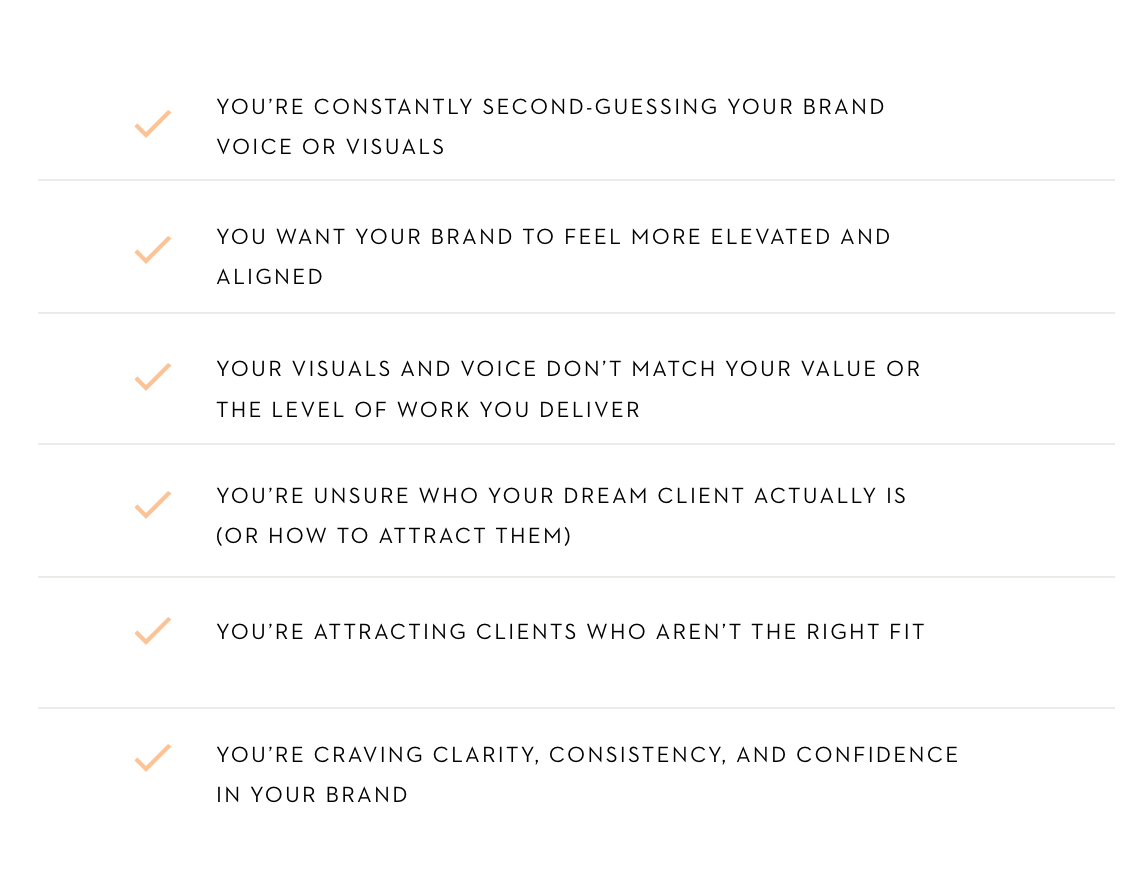 Come hang with me in Brand Camp, where I’m spilling all my secrets on how I write copy that creates deep connection, which continuously results in new (and repeat!) clients that love how I do what I do, and feel like they know me long before I start their project. You’ll learn how to do the same for your brand, as I show you everything I know to write copy that makes you REAL, wildly confident, and THE one your clients want to partner with.